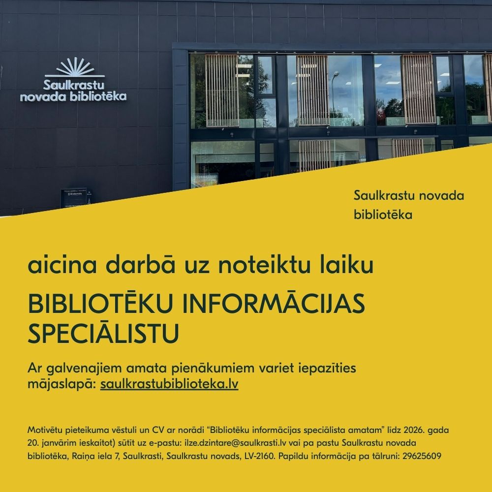 Turpināt lasīt “Saulkrastu novada bibliotēka aicina darbā BIBLIOTĒKU INFORMĀCIJAS SPECIĀLISTU uz noteiktu laiku”